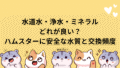 - 回し車・給水ボトル:週1で洗浄(ぬるま湯+こすり洗い、洗剤残りに注意)
