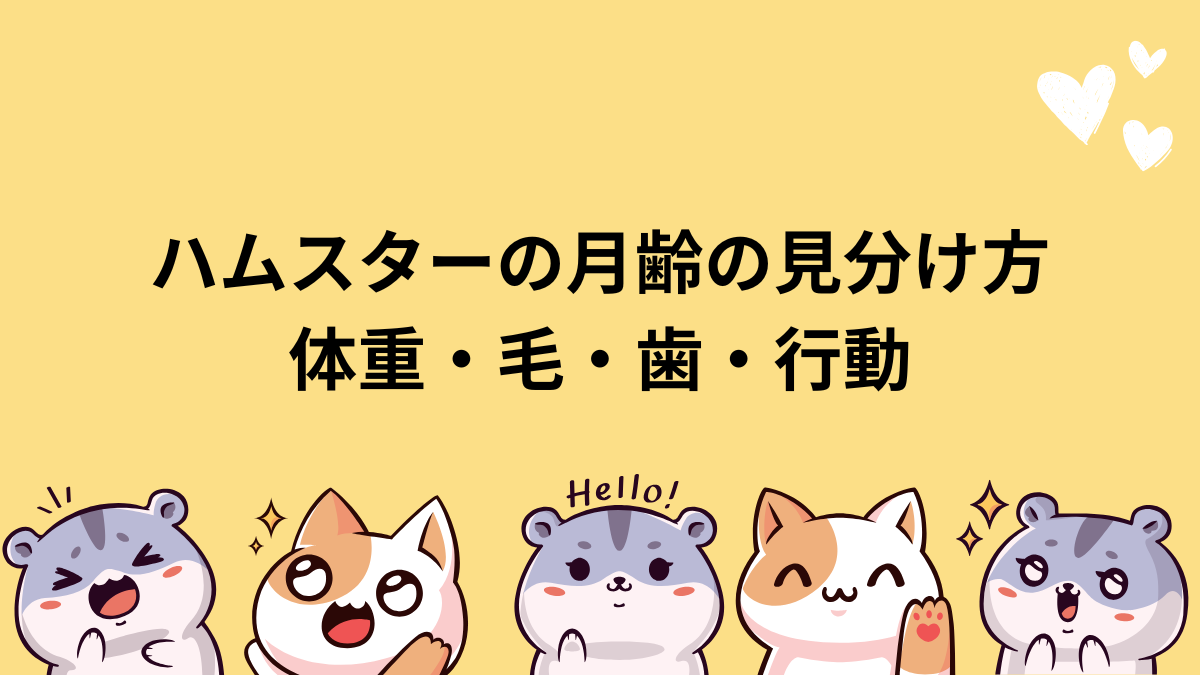お迎えしたハムスターの「正確な月齢が分からない…」という時に、体重・毛並み・歯・行動など“外から分かる手がかり”を組み合わせて月齢の目安を推定する方法をまとめました!個体差が大きい動物なので、単一の指標で断定しないのがコツです!
