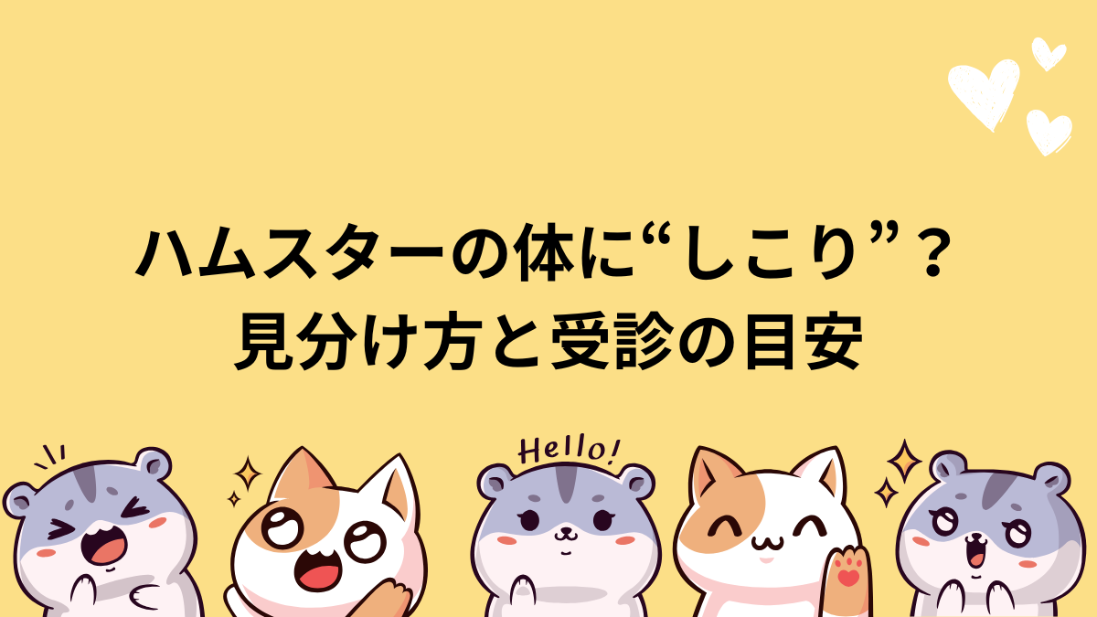 ハムスターの体に“しこり”を見つけると不安になりますよね、、実は原因はさまざまです 触り心地や増え方、痛みの有無である程度の当たりを付けつつ、受診の目安を早めに判断することが大切です